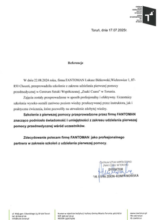 Cześć, nazywam się Łukasz Bińkowski i jestem właścicielem firmy Fantoman. W 2012 ukończyłem studia na Uniwersytycie Medycznym w Łodzi) i uzyskałem tytuł Ratownika Medycznego. Pracuję w ZRM i SOR. Tytuł instruktora uzyskałem w 2013. Jestem wykładowcą Akademii Nauk Stosowanych Gospodarki Krajowej w Kutnie. Ukończyłem liczne kursy, w tym ITLS. Lubię dobrą koszykówkę i dobrą kuchnię.